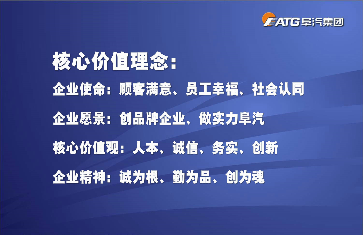 一、企業(yè)愿景:創(chuàng)品牌企業(yè)、做實(shí)力阜汽